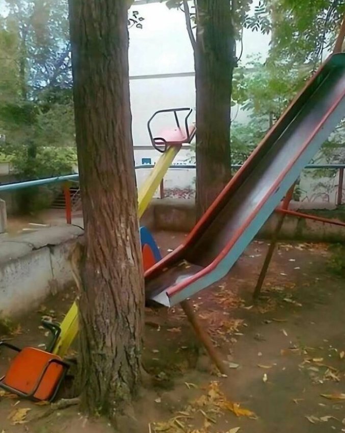 Горка заканчивается там, где начинается боль. Качели ловят в ловушку, как древние механизмы инквизиции. Эта площадка не про веселье — это испытание духа. Только сильнейшие получат шанс на второй заход.