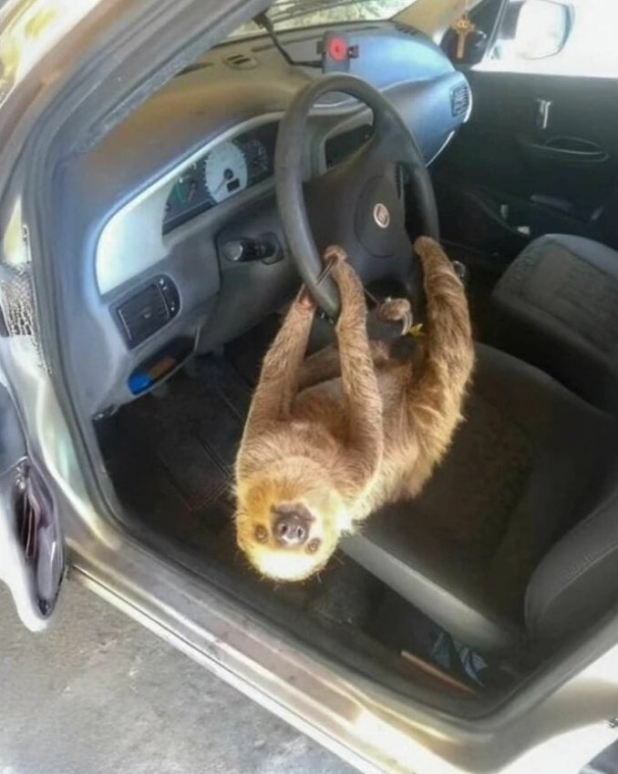 Бразилец оставил окно машины открытым на ночь. На следующее утро он обнаружил ленивца, висящего на руле.
