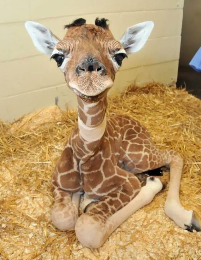 Это ДЕТЕНЫШ ЖИРАФА, если вы его никогда не видели. При рождении они уже имеют рост более 1,8 метра — выше большинства людей! Уже через час после рождения они умеют стоять, ходить и даже бегать. Неуклюжий, очаровательный готовый к дикой природе с первого дня.
