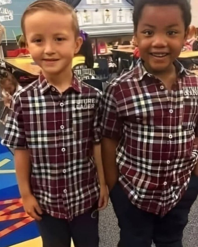 «Вчера вечером мой сын рассказал мне, что его одноклассник очень похож на него, и что они вместе будут праздновать День близнецов в школе. Он уверенно объяснил мне, что у них одинаковый цвет глаз и волос, и настаивал на том, что они идентичны. Уложив его спать, я в девять вечера побежала покупать два одинаковых наряда — один для него, а другой для его друга, чтобы на следующий день они могли почувствовать себя близнецами. Утром его учительница прислала мне эту фотографию — и моё сердце растаяло. Было очевидно, что мальчики совершенно не похожи. Но для моего сына это не имело значения. В его глазах они были одинаковыми. Как прекрасен был бы этот мир, если бы мы все могли видеть его глазами двух пятилетних детей.»
