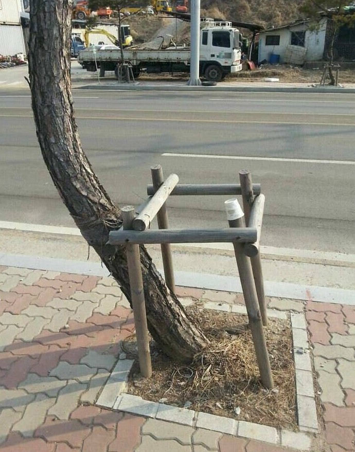 Очевидно, дерево здесь росло не для того, чтобы его ограничивали деревянными рамками. Оно гордо изгибается в сторону свободы, показывая свой характер. Деревья тоже любят нарушать правила.