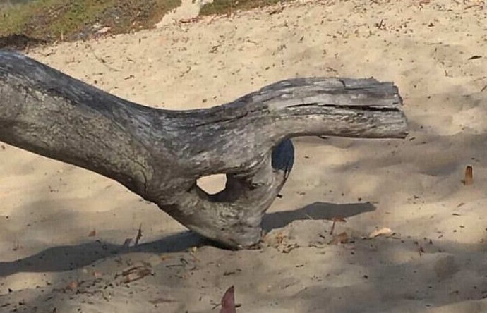 Этот кусок дерева решил притвориться человеком, отдыхающим на пляже. Судя по его расслабленной позе, отпуск у него явно удался. Теперь понятно, почему древесина такая дорогая — она умеет отдыхать лучше нас!
