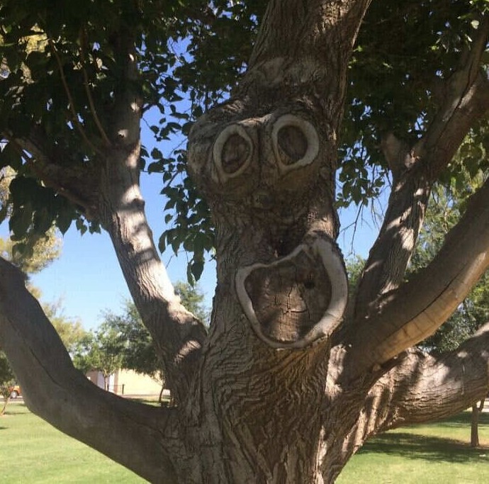 Это дерево выглядит так, будто случайно узнало, что его скоро собираются пилить. Его выражение напоминает вопль ужаса, достойный фильмов ужасов. Надеемся, ему просто показалось.