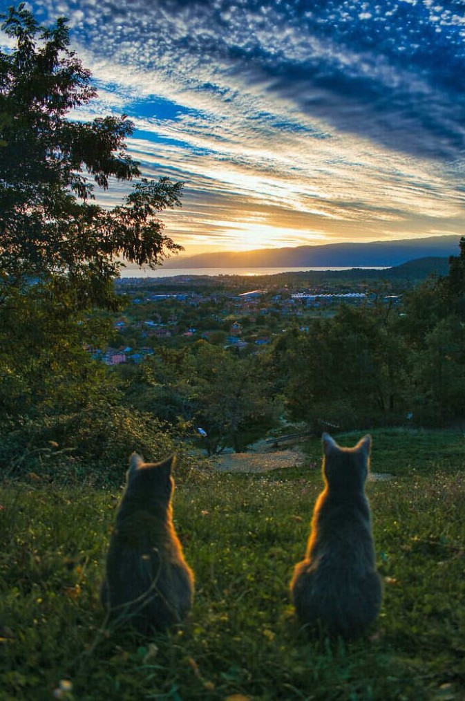Я сфотографировал своих кошек, наблюдающих за закатом