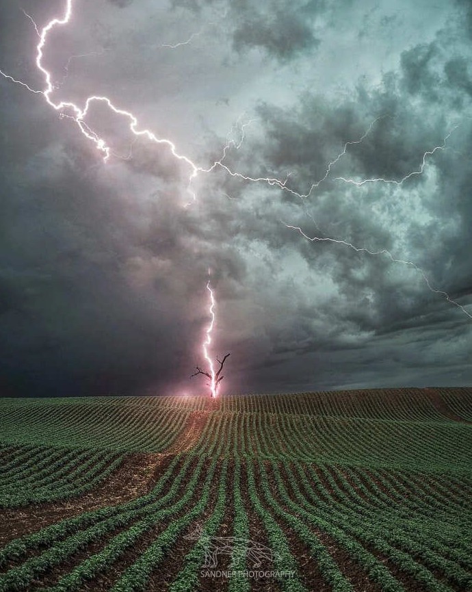 Ровные борозды будто нотный стан, а молния — единственная нота, разорвавшая тишину.