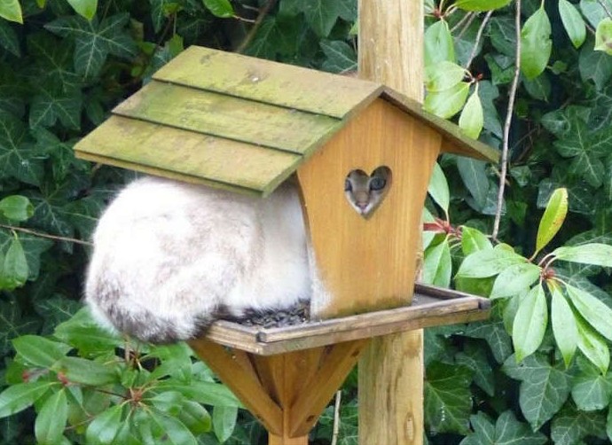 Смена руководства: теперь выдача семечек осуществляется мурчащим администратором. Птицам объявлен перерыв на нервный чай. Табличка на входе обновлена: «Осторожно, кот в домике».