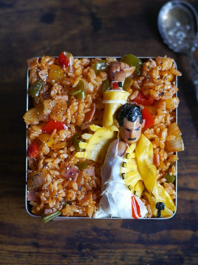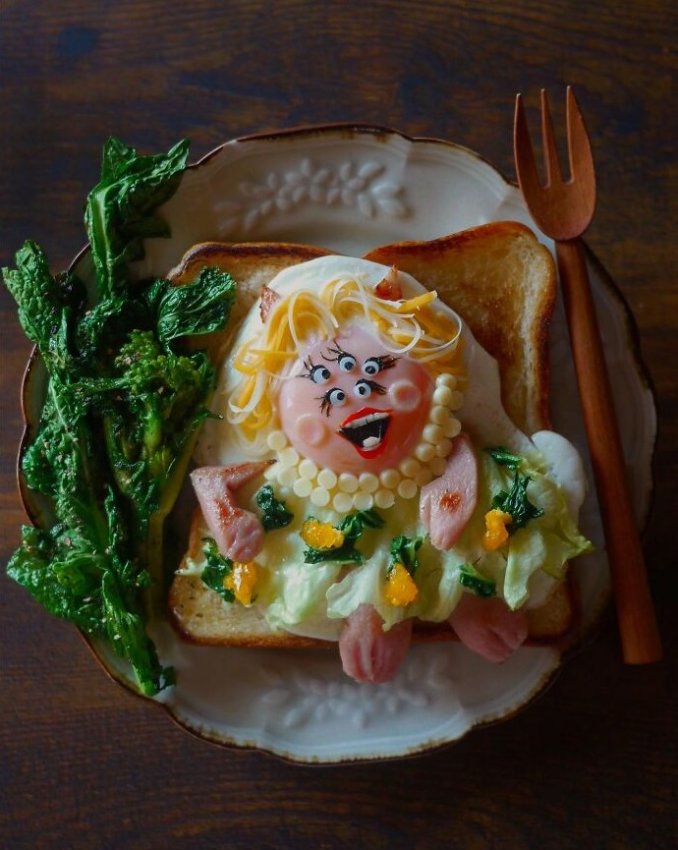 Освоив кярабэн — японское искусство бэнто с иероглифами — Этони Мама превращает обычную еду в яркие, узнаваемые образы. Эта мама из Токио воссоздаёт образы популярных персонажей мультфильмов, культовых кинозвёзд и животных, создавая привлекательные образы. Несмотря на отсутствие специального образования в области фуд-арта, у неё тысячи подписчиков в в социальных сетях. На каждое блюдо уходит около часа — и это не просто «красиво»: тарелки сбалансированы, питательны и полны юмора. Еда становится съедобной загадкой, которую хочется отгадывать до того, как остынет суп.