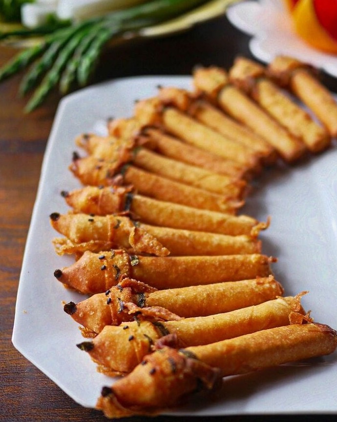 Золотистые хрустики выстроились в линейку, будто набор №2 для рисования. «Грифель» из нори и соуса задаёт тон — сначала хрусть, потом ум! Идеальный способ выучить алфавит вкусов на перемене.
