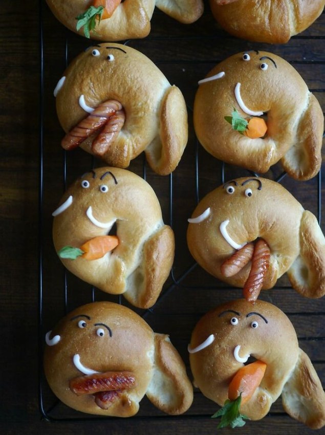 Булочки-слонята с ушками и забавными хоботами — кто-то выбрал морковку, а кто-то сосиску. Каждая «мордашка» смотрит на тебя по-разному — тут и скромняги, и озорники. Едва успеешь достать с решётки, как начинается сафаризавтрак. Ешь быстрее, пока хоботы не утащили начинку!