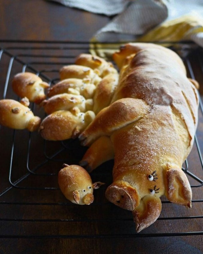 Румяная буханка-мама и россыпь поросят-булочек дремлют на решётке после «солнечных ванн» в духовке. Разломать такого малыша почти преступление, но аромат хруста быстро убеждает. Идеальный хлеб для завтрака с улыбкой.