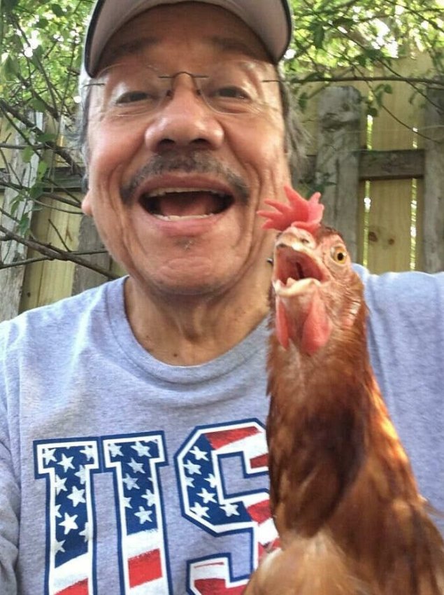Когда курица решила, что она тоже заслуживает своих пять минут славы в соцсетях! Синхронные открытые рты и одинаковое выражение радости делают этот кадр абсолютно бесценным. Кто кого здесь копирует — большой вопрос.