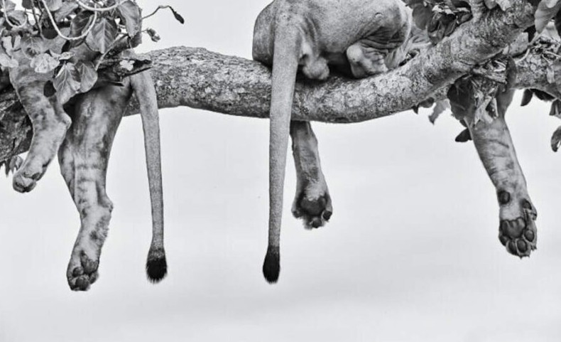 Фотография была сделана в секторе Ишаша Национального парка Королевы Елизаветы в Уганде. Рано утром мы встретили знаменитых африканских львов Ишаши и провели с ними большую часть дня. Отдыхая на ветвях, они часто меняли позу, и в какой-то момент самец повернулся спиной к самке. Пока их хвосты и лапы болтались, мне удалось запечатлеть этот уникальный момент.