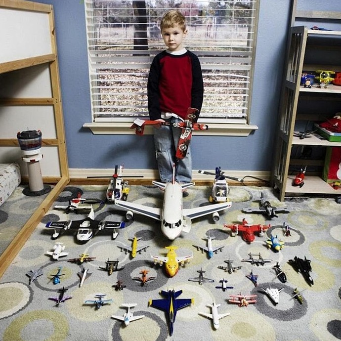 Целый авиапарк расположился на полу детской комнаты! Этот юный авиатор собрал коллекцию из десятков самолётов — от крошечных истребителей до огромного пассажирского лайнера. Каждый борт занял своё место на импровизированной взлётной полосе. Судя по гордой позе владельца и количеству техники, родители явно поддерживают его мечту о небе. В такой коллекции есть место и для вертолётов, и для винтажных бипланов!