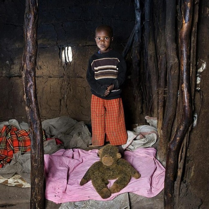 Один потрёпанный плюшевый примат на розовом одеяле — единственный друг этого ребёнка из африканской деревни. Стены из глины и палок, отсутствие электричества, но есть самое главное — любимая игрушка. Обезьянка явно пережила немало приключений и стирок, но продолжает верно служить своему хозяину. В мире, где нет магазинов игрушек, одна обезьяна дороже сотни новых кукол.