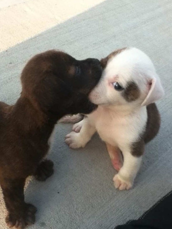 Темный щенок-ветеран зоны: «Слушай сюда, малыш. Видишь того рыжего в углу? Не связывайся. Тапки хозяина? Не трогай. Кот? НИКОГДА не связывайся с котом.» Белый новичок только что понял, что детский сад закончился, началась взрослая жизнь со своими жестокими правилами.