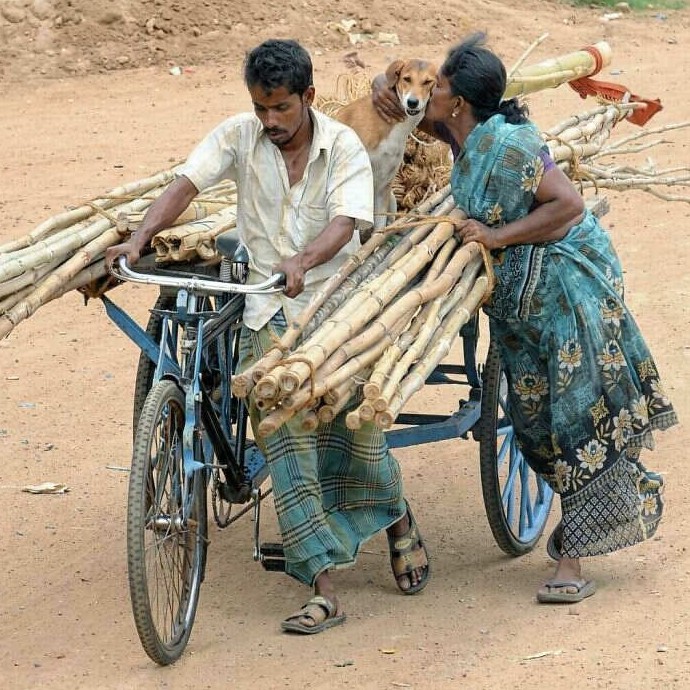 Когда нужно перевезти дрова, жену И любимого пса, а машины нет — индийская изобретательность не знает границ. Собака на верхушке багажа выглядит так, будто это ее законное место и она ездит так каждый день. Судя по довольному выражению морды, это самый комфортабельный транспорт, в котором она когда-либо путешествовала.