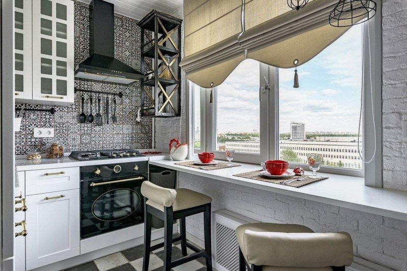 Размеры кухни в большинстве типовых квартир или частных домов не превышают 8 м2, поэтому если имеется возможность, отличной идеей является объединение помещения с балконом или лоджией. Этот способ позволяет территориально расширить кухонную площадь, сделать ее более комфортной. Часть перегородки, которая ранее была подоконником, можно переоборудовать в барную стойку, либо балконное пространство использовать в качестве столовой.