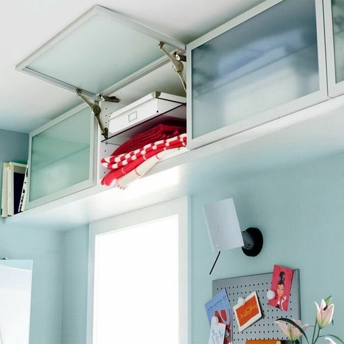 Сделайте над дверью ниши с дверцами. / Фото: Zen.yandex.comВысокие потолки являются настоящим спасением, если квартира сама по себе небольшая. С их помощью сразу можно решить все проблемы, связанные с отсутствием мест для хранения. Просто соорудите над дверными проемами полки или своеобразные ниши, и разместите там вещи, в которых вы нуждаетесь лишь время от времени. Например, сезонную одежду, постельное белье, новые полотенца, елочные игрушки и так далее. Особенно этот вариант пригодится, если все эти вещи вы обычно хранили на балконе. В этом случае, у вас освободится много места на лоджии, и вы сможете использовать ее как полноценную комнату, тем самым, расширив пространство квартиры.