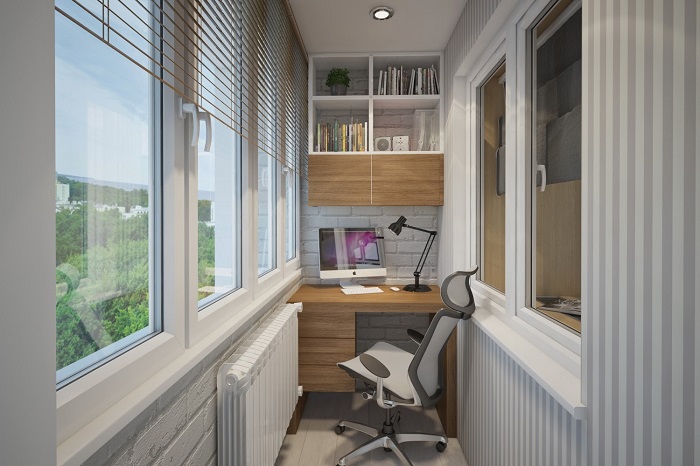 На балконе можно сделать мини-кабинет. / Фото: dizainkyhni.comПомните, мы уже упоминали о том, что балкон нужно освобождать, дабы появилась возможность использовать его в качестве полноценной комнаты? Так вот, просторный, утепленный, застекленный и отремонтированный балкон действительно является прекрасным местом для отдыха или работы. Там можно расположить мини-офис или мастерскую, поставить небольшой удобный диванчик и журнальный столик. Если выход на лоджию находится в спальне – сделайте из нее гардеробную или бьюти-студию, если на кухне – обеденную зону. Вариантов применения балкона множество. Главное – понять, чего вы действительно хотите.Также можете взять на вооружение эти 12 идей для жизни в малогабаритке: опыт пары из Нью-Йорка