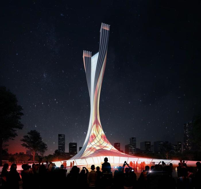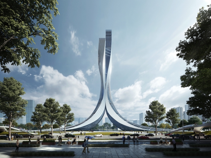Дизайнерская студия RMJM, автор концепта Лахта-центр в Санкт-Петербурге, создала новый проект, который стал победителем в конкурсе на строительство Врат Сянцзян в Хунани (Китай). Две извилистые башни, переплетенные в центре между собой, поднимутся на высоту 177 м и станут многофункциональным памятником традиционной культуре, истории и современным технологиям.