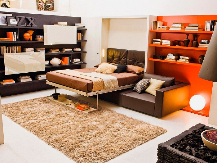 Обратите внимание на мебель 2в1. / Фото: Stroymore.ruУчитывая, какое количество мебели сейчас предлагают магазины, кажется, что выбрать подходящий вариант очень просто. Однако, это ошибочное мнение. Предметы интерьера необходимо подбирать грамотно и тщательно, чтобы впоследствии не пожалеть о покупке. Чтобы вам было проще, прислушайтесь к следующим советам:• Если квартира совсем крохотная, обратитесь к специалистам, чтобы они изготовили мебель на заказ. Так вы сможете сэкономить ценные квадратные метры в комнатах.• Несколько маленьких шкафов – плохая идея для оформления хрущевки. Лучше приобрести один высокий экземпляр до потолка с большим количеством полочек. Чтобы шкаф был практически незаметен в комнате, выбирайте его под цвет потолка и стен. В этом случае он «растворится» в пространстве.