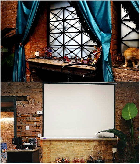 В некоторых номерах есть рабочий стол и кинозал («Liuyue Capsule Hotel», Китай). | Фото: liuyue-capsule.tianjintophotels.com.Несмотря на то, что отель считается капсульным, в нем наравне с крошечными номерами есть полноценные апартаменты с отдельным местом для чаепития, рабочей зоной, гостиной и ванной комнатой с гидромассажной ванной.