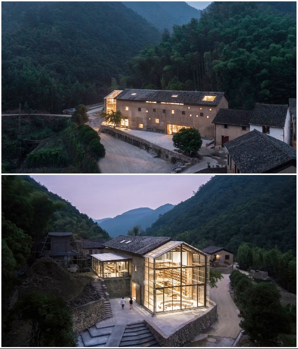 В китайской провинции Чжэцзян открылся капсульный отель («Liuyue Capsule Hotel»). | Фото: dezeen.com.Заброшенное странное здание, расположенное в живописном месте неподалеку деревни Цинлунву (Qinglongwu), было решено отреставрировать и создать необычный отель. С этой целью владельцы обратились в архитектурную компанию Tao+C. Перед специалистами компании была поставлена довольно сложная задача, им предстояло из обычного глинобитного дома с земляным полом сделать современный гостиничный комплекс под названием «Liuyue Capsule Hotel». В него должны были входить 20 отельных номеров, лаунж-зоны, библиотека и книжный магазин.