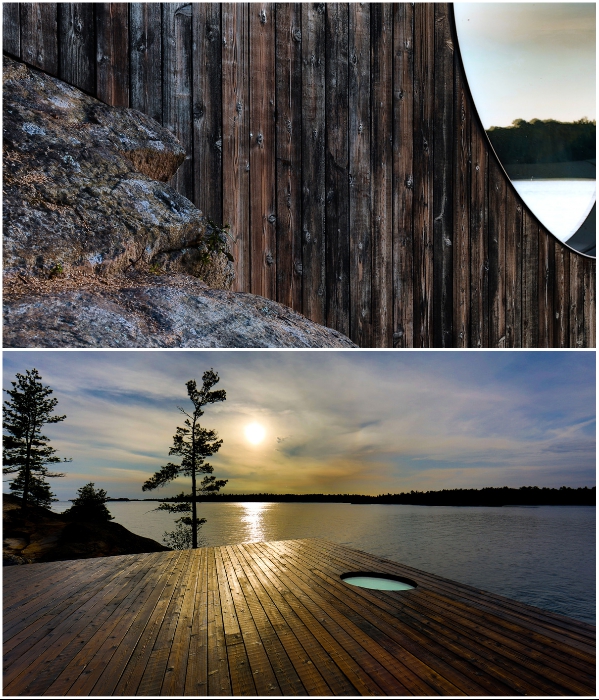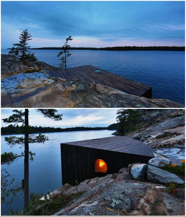 Часть стены сауны интегрирована в скальную породу берега («Grotto», Канада). nashvancouver.com/ hqroom.ru.Интересный факт от Novate.Ru: Для большинства из нас владелец частного острова кажется богатейшим человеком, как минимум звезда мирового масштаба или какой-нибудь арабский шейх. Но в Канаде (и не только) остров площадью от 5 до 7 га с благоустроенным коттеджем стоит значительно дешевле (!), чем стандартная двушка 40 квадратов в Москве.