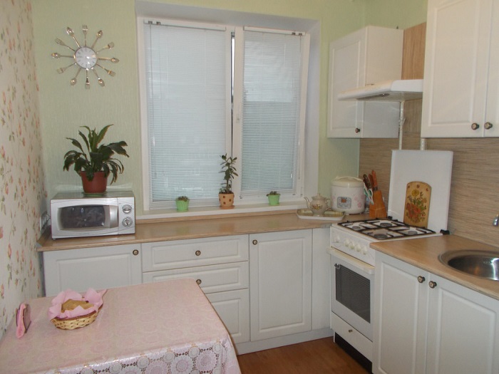 Светлая кухня без акцентов выглядит скучно. / Фото: Dizainexpert.ruРаньше считалось, что яркие цвета делают комнату меньше. Это мнение правдиво, но лишь при условии, что вы всю комнату оформляете в подобных оттенках. А вот если использовать яркие тона осторожно, дозированно и в качестве акцентов, то ваш интерьер лишь выиграет от этого. Например, вы вполне можете себе позволить купить изумрудные шторы и ковер, если они гармонично будут сочетаться с общей обстановкой. Яркие пледы и диванные подушки также имеют место быть – они добавляют уюта и тепла. В то же время, если вам надоест расцветка, вы с легкостью сможете заменить текстиль на другой, не тратя большое количество денег.Что касается рисунка, то вертикальная полоска или геометрические фигуры, расположенные по такому же принципу, смогут визуально увеличить высоту потолка. А вот горизонтальные линии, наоборот, зрительно сделают комнату уже.
