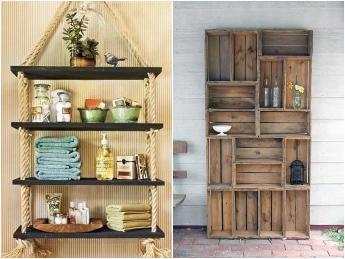 Даже самые простые конструкции могут быть полезными и украсить интерьер. | Фото: interesko.info/ postila.ru.Поскольку полки открывают новые возможности не только для организации хранения, но и создания особого интерьера, они могут служить милым фоном домашнего декора. Учитывая простоту конструкции, их можно изготавливать и своими руками, причем материалы могут быть разнообразными и даже самыми неожиданными.