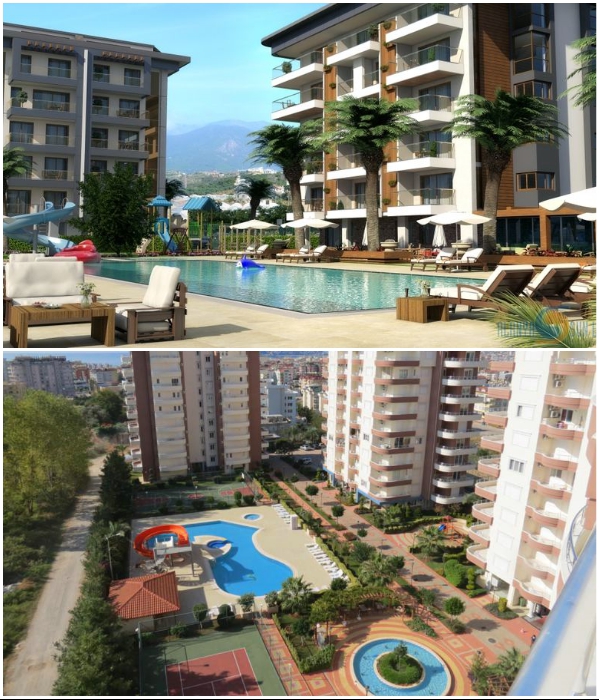 В последние годы на территории Турции строят только многофункциональные жилые комплексы. | Фото: turkeyforfriends.com/ ipropertyu.com.В последнее десятилетие на территории Турции сложно найти стройку, где возводится единственное здание. Застройщики, да и сами покупатели недвижимости отдают предпочтение жилым комплексам. В этом случае можно создать довольно многогранную инфраструктуру для нескольких многоэтажек, что упрощает работу строителям и жизнь владельцам квартир. Чем выше стоимость квадратного метра жилья и больше домов, тем разнообразней и качественнее будут возможности обустройства закрытой территории. Помимо стандартной охраны, бассейна и парковки, которыми обеспечены практически все вновь созданные комплексы, могут создаваться спа-салоны, спортзалы, различные магазины, салоны красоты, медицинские центры и т.д.
