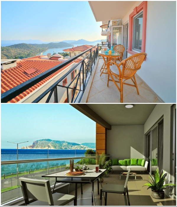 Наличие больших балконов, лоджий или террас – норма для турецких квартир. | Фото: booking.com/ more.estate.В Турции в среднестатистической квартире площадь балкона зачастую больше, чем размеры нашей малогабаритной однушки. Балкон, лоджия или терраса (все зависит от планировки и этажа) обычно бывает не меньше 30 квадратов. Такие габариты позволяют обустраивать прекрасные зоны отдыха и даже столовые на свежем воздухе, что позволяет любоваться открывающимися живописными видами.Как правило, на большие балконы/террасы подводят коммуникации – рукомойники. Такое непонятное для нас обустройство объясняется очень просто – облегчение уборки и полив цветов.