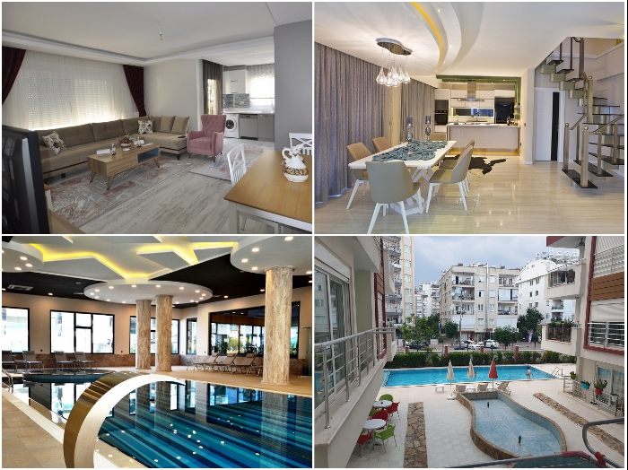 В новостройках Анталии квартиру в жилом комплексе можно купить от 70 тыс. дол. с общей площадью (брутто) более 85 кв.м. | Фото: luxestate-turkey.com/ booking.com.Если площадь наших квартир рассчитывается по внутреннему периметру, включая балкон и лоджии, турецкие же измерения производятся по внешнему (брутто). При этом включается все вышеперечисленное, а также толщина стен и даже общая лестничная площадка, при этом ее площадь делится на все имеющиеся квартиры.Важно: Такие нормы не способны обмануть несведущих в столь необычных расчетах. Причина кроется в законодательстве, ведь под застройку продается земля, а это значит, что каждый должен пропорционально платить за использование и общих частей.