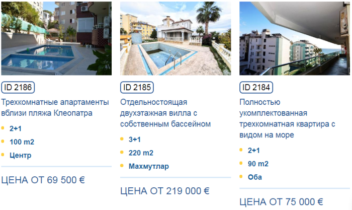 Так выглядят объявления о продаже квартир в Турции. | Фото: idealrealestate.com.tr.Тех, кто думает о приобретении квартир в живописной Турции на сайтах недвижимости, встречают интригующие данные, типа – 1+1, 3+1 и т.д. Оказывается, таким образом извещают покупателя о наличии спальных комнат и гостиных, причем первой цифрой всегда будет количество изолированных спален.