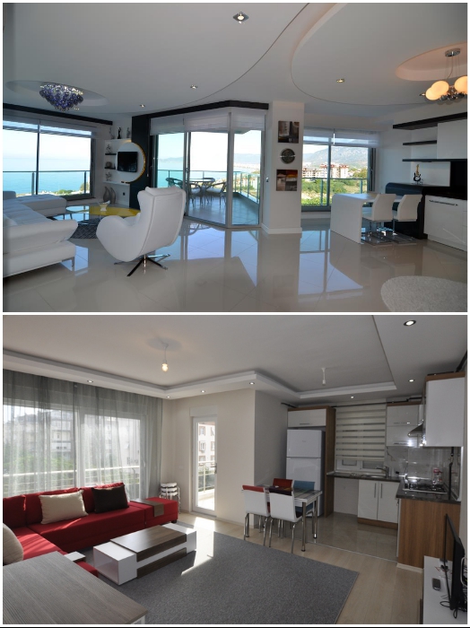 В Турции квартиры на первичном рынке продают только с чистовой отделкой и встроенной кухней. | Фото: myhome-turkey.com/ orionalanya.com.Осталось рассказать о стоимости такой заманчивой недвижимости в живописной стране с довольно мягким климатом. Как оказалось, здесь и климат благоприятный и цены на недвижимость (и не только) очень даже при приятные. Как и в любой стране разброс цен на этом рынке существенный, все зависит от региона, статуса города, видовых характеристик, площади и требований к комфорту.