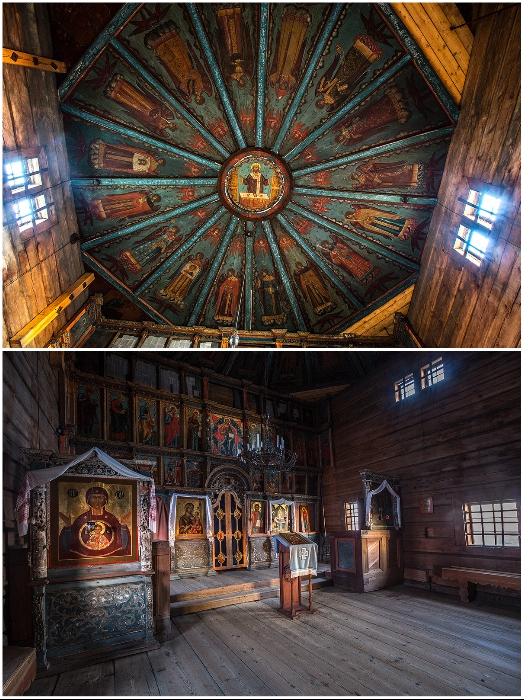 Церковь Покрова Пресвятой Богородицы – действующая церковь с уникальным иконостасом и иконами XVI в (Кижи, Респ. Карелия). | Фото: dostop.ru.Здесь же находится еще одна достопримечательность – Церковь Покрова Пресвятой Богородицы. Невзирая на то, что она более скромных размеров, но славится не менее впечатляющей строгой красотой. Этот храм несколько раз перестраивался из-за постоянных пожаров и такой облик, что мы можем видеть сейчас, церковь обрела в 1764 г.