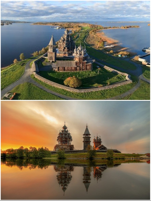 Церковь Преображения Господня – 38 м. невиданной красоты и самый узнаваемый памятник деревянного зодчества России (о. Кижи, Карелия). | Фото: geo-storm.ru.Справка от Novate.Ru: Ки?жи (Ки?жский пого?ст) — это уникальный в своем роде архитектурный ансамбль, который входит в состав Государственного историко-архитектурного музея «Кижи», основанный в 1966 г. На его территории находятся не только храмовые сооружения,созданные на острове, но и десятки уникальных объектов, датируемых XVII-XVIII вв.