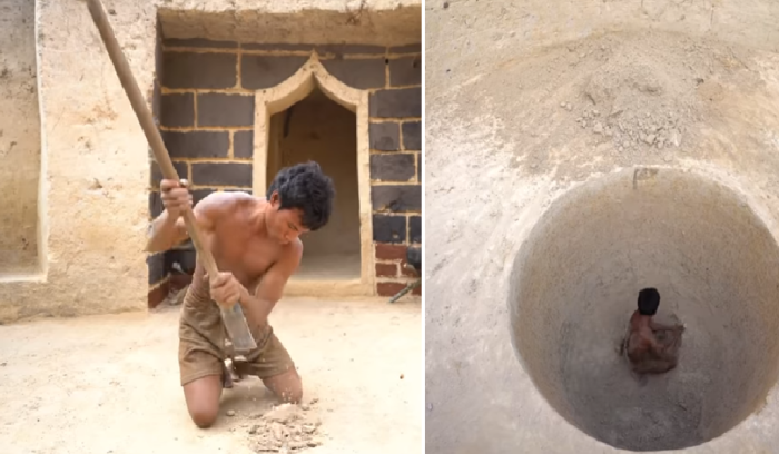 5. Колодец для подземного дома На создание колодца понадобилось 10 дней. | Фото: youtube.com/ © Survival Unique Discovery.