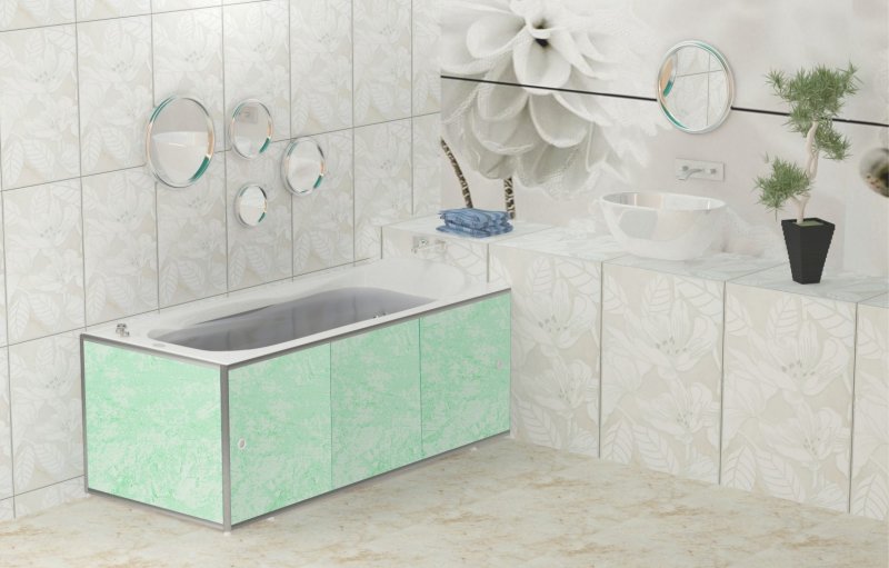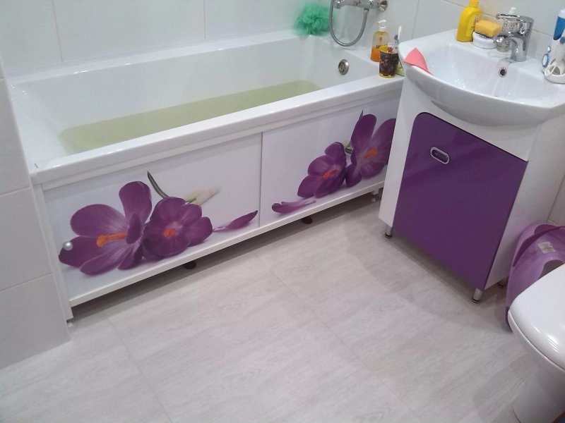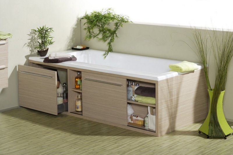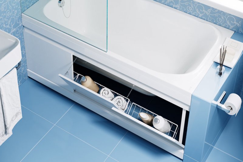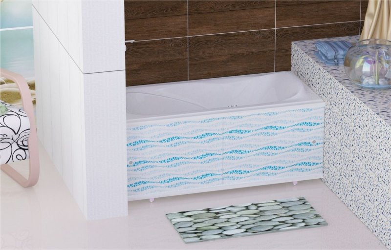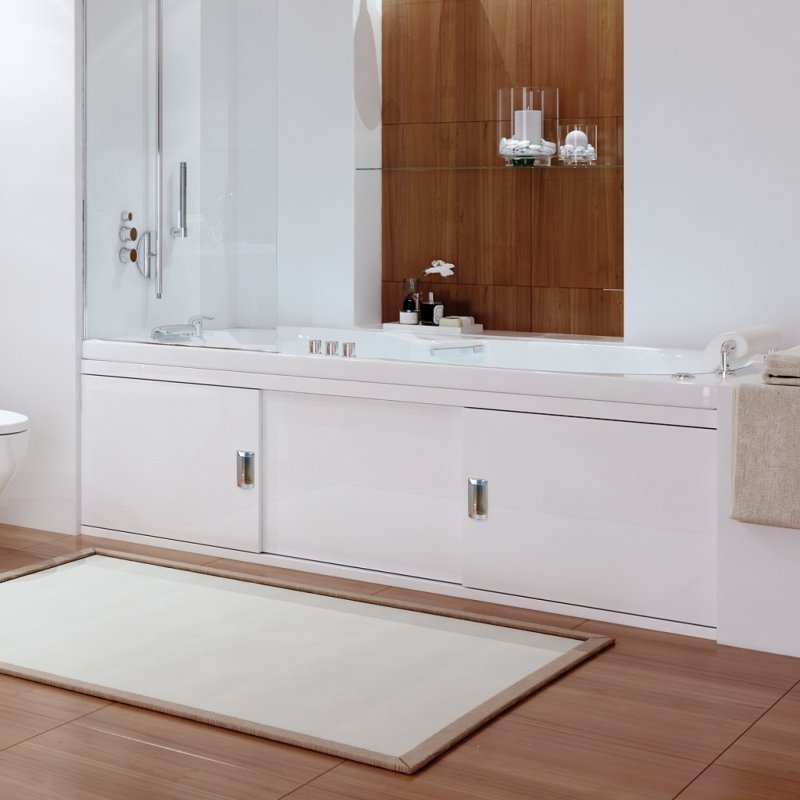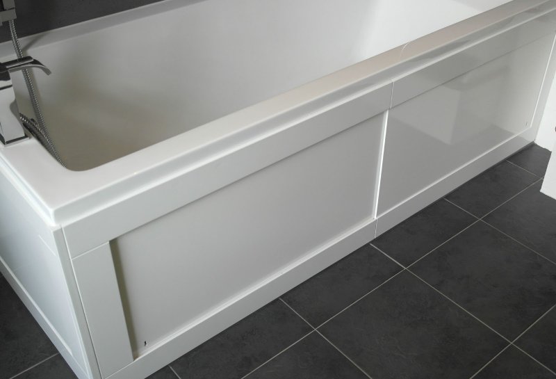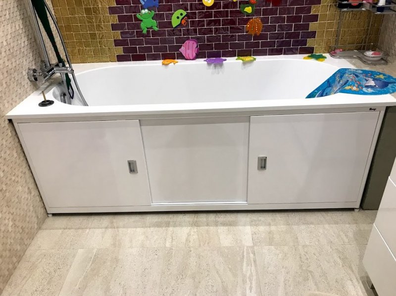 - декоративное «заграждение» не должно мешать комфортному использованию. Если снабдить панель ножками, оставить щель или выемку для ног, будет гораздо удобнее чистить ванну или купать в ней ребенка – пальцы ног не будут упираться в стенку и наклоняться станет гораздо проще. Такие приспособления позволяют быстрее заметить воду, скопившуюся под ванной и устранить ее;