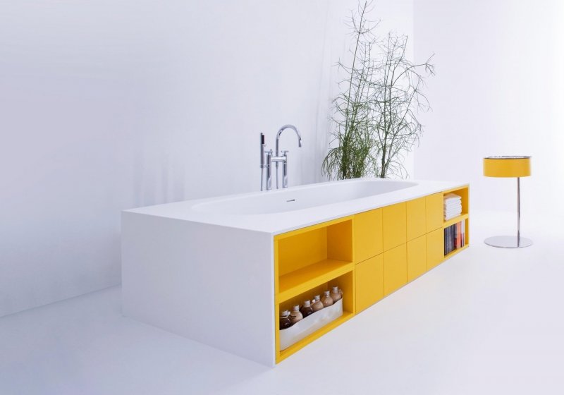 Главная задача экрана – скрыть от взора владельцев неэстетичные ножки, борт чаши и коммуникации. И хотя внешний вид акриловых и пластиковых изделий не слишком отталкивающий, по сравнению с внешней стороной чугунных или стальных изделий, их все же следует задекорировать. Экран скроет все неказистые элементы, мелочи в виде баночек и флаконов. Если стены облицованы кафелем, используйте для создания экрана тот же материал, чтобы все предметы облицовки сочетались друг с другом.