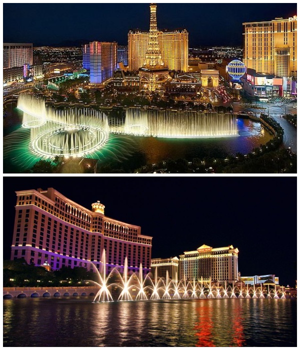 Феерическое представление с музыкально-танцующим фонтаном Белладжио в главной роли (Лас Вегас, США). | Фото: kanalukraina.tv/ liveinternet.ru.Самый заманчивый город мира, ночная жизнь которого притягивает как магнитом огромное количество туристов, старается поддерживать свой статус. На главной улице города Лас-Вегас-Стрип или просто The Strip находится уникальный фонтан, который видно практически из каждого круглосуточного казино, роскошного ресторана, тематического отеля или аллей, расположенных поблизости. В любое время дня и ночи можно наслаждаться его красотой и живительной прохладой, но больше всего зрителей у его бортика собирается в вечернее время, когда струйки воды не просто танцуют, они в этот момент подсвечиваются. При этом их фантастически причудливый танец сопровождается приятной музыкой.