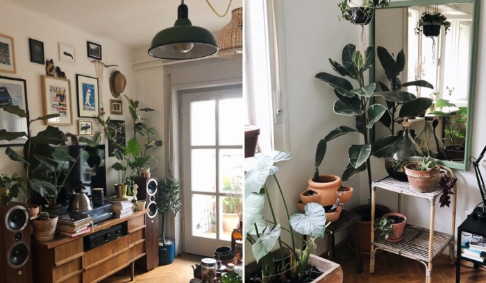 Нине удалось создать интерьер, в котором гармонично сочетается старая мебель и современный дизайн. | Фото: dominvrt.si.Единственное для чего не жалеет ни места, ни времени молодая хозяйка, так это для живых цветов, которыми украшена вся квартира. Также ни в чем не отказывают домашнему любимцу Сабу, который может занять не только любимое кресло, но и развалиться на хозяйской кровати и белоснежному коту.