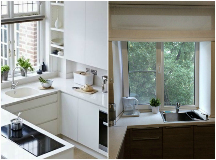 Кухонная мойка у окна. | Фото: БэбиБлог, Pinterest.По мнению Novate.ru, идею установки кухонной мойки у окна нельзя назвать полностью провальной, ведь у подобного размещения есть неоспоримые плюсы. Например, смотреть в окно, натирая тарелки - куда приятнее, чем пялиться в стену; в дневное время вы получите источник хорошего, естественного света и экономию пространства. Кажется, вполне себе жизнеспособная идея, но есть и некоторые минусы. Один из главных - вечно грязное окно. Плюс, для того чтобы перенести мойку к окну, нужно существенно изменить коммуникации - это деньги и риски. Ну, и напоследок, над такой мойкой не повесишь сушилку, придется устанавливать ее сбоку, что может не очень удобно.