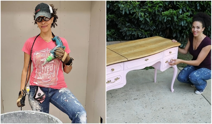 Известная американская блогер Серена Аппиа уже много лет старается привести в порядок свой дом. Ее преобразования больших финансовых затрат не требуют, потому что креативная девушка делает все своими руками. Особенное удовольствие ей приносит реставрация старой мебели, которую она покупает за сущие копейки в комиссионных магазинах. Так произошло и с раритетным французским туалетным столиком, который блогер приобрела всего лишь за 10 дол. и превратила в стильный предмет мебели. Эффектная реставрация потрепанного французского туалетного столика. | Фото: youtube.com/ © Thrift Diving.Для того, чтобы решиться на реставрацию старой добротной мебели, одного желания все-таки будет мало, ведь подобная работа требует еще и наличие инструмента, опыта работы с древесиной и красками, а также творческого мышления. Всем этим блогер Серена Аппиа (Serena Appiah) обладает сполна, поэтому за любую реконструкцию берется с удовольствием. Ведущая собственного канала на YouTube Серена Аппиа – мастерица на все руки. | Фото: youtube.com/ © Thrift Diving.Как стало известно авторам Novate.ru, креативная мастерица вдохновение и модели для переделки ищет в комиссионных магазинах сразу в трех штатах. Вот и в очередной раз поездка оказалась удачной, ведь в одном из таких магазинчиков она увидела потрясающий французский туалетный столик, который стоил сущие копейки. Приобретение было ценно тем, что этот винтажный предмет мебели сделан в изящном викторианском стиле из натурального дуба. Несмотря на плачевный вид, туалетный французский столик имел прекрасные формы и был добротным. | Фото: youtube.com/ © Thrift Diving.После тщательного осмотра старинной вещи оказалось, что сломаны или отсутствуют не только ручки и петли на откидном зеркале, но и фигурная часть молдинга на одном из ящиков. Также была сильно повреждена крышка, ну и потерялся общий привлекательный вид довольно изящного туалетного столика. Поскольку вещь была сделана на совесть, разбирать ее не представлялось возможным, поэтому все преобразования пришлось делать на изделии в собранном виде. Для очистки поверхности стола можно использовать шлифовальную машину и наждачную бумаг. | Фото: youtube.com/ © Thrift Diving.Чтобы привести в порядок верхнюю часть стола, требовалась не только очистка поверхности, но и полноценное снятие верхнего покрытия. Учитывая глубину повреждений, Серена решила воспользоваться шлифовальной машиной с разной зернистостью съемных кругов. После кардинального снятия поврежденного покрытия пришлось поработать еще и наждачной бумагой. Благодаря очистке и фрезеровке линия перехода стала более выразительной, а поверхность ровной. | Фото: youtube.com/ © Thrift Diving.Для очистки фигурной окантовки поверхности стола потребовалось применение специальной размягчающей жидкости. После ее нанесения достаточно было пройтись шпателем или циклей и протереть плотной тряпкой, чтобы избавиться от слоя старого покрытия.Важно! Если подобные работы планируете проводить внутри помещения, то лучше одевать респиратор, потому что растворители лакокрасочного покрытия очень едкие.Для создания более четкой линии окантовки Серена воспользовалась фрезеровальной насадкой. Благодаря этому обозначился четкий край и исчезли глубокие царапины на поверхности. Перед покраской все поверхности и внутреннюю часть нужно тщательно вымыть. | Фото: youtube.com/ © Thrift Diving.П