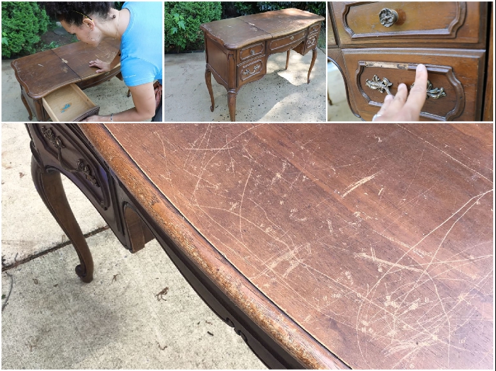 Эффектная реставрация потрепанного французского туалетного столика. | Фото: youtube.com/ © Thrift Diving.Для того, чтобы решиться на реставрацию старой добротной мебели, одного желания все-таки будет мало, ведь подобная работа требует еще и наличие инструмента, опыта работы с древесиной и красками, а также творческого мышления. Всем этим блогер Серена Аппиа (Serena Appiah) обладает сполна, поэтому за любую реконструкцию берется с удовольствием.