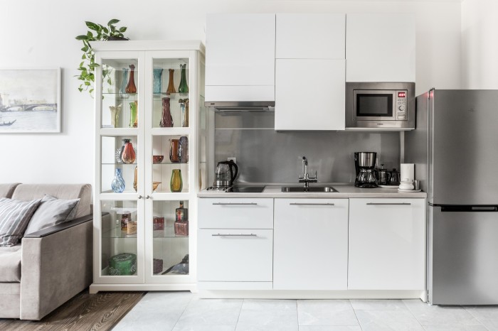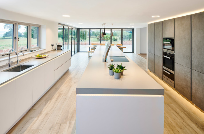 Минималистичная кухня стремится к ощущению «пустоты» и «дзена», чтобы ничто не отвлекало внимание от самого действа: ужина, приятного разговора за трапезой, игр детей, включенной телепередачи. Минимализм никогда не стремится обратить на себя внимание. Здесь акцентом становится подсветка или мелкая бытовая техника, но не сама кухня, которая часто даже имеет «невидимые» ручки на фасадах.