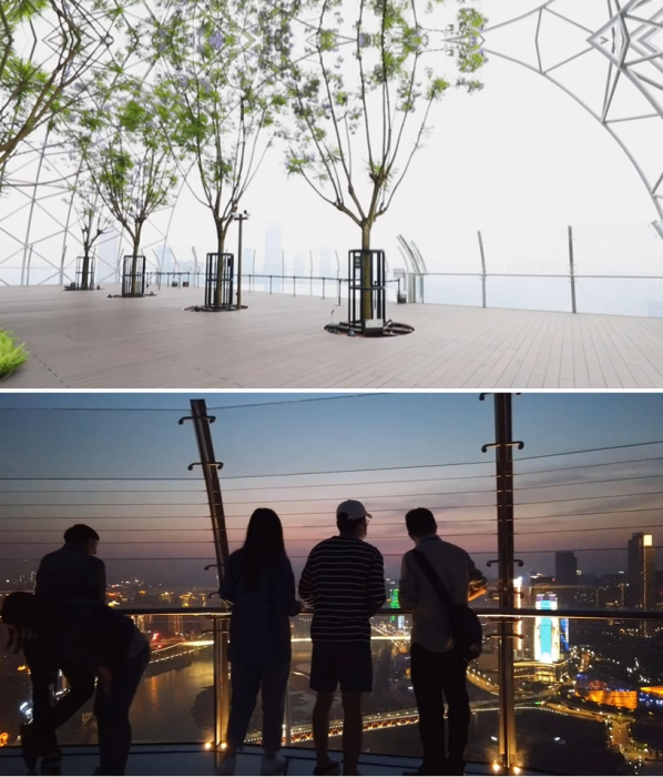 Со смотровой площадки открывается умопомрачительный вид в любое время суток («Crystal», Китай). | Фото: youtube.com/ © CapitaLand.Только после этого экстремалы смогут сполна насладиться умопомрачительным видом под ногами на высоте 250 м. Несмотря на то, что это все-таки аттракцион не для слабонервных, желающих прогуляться по стеклянному полу хоть отбавляй.