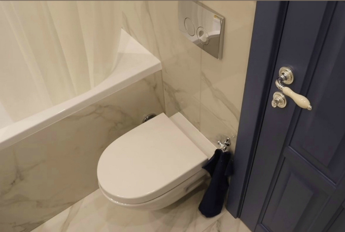 Унитаз-биде в маленьком санузле. | Фото: HappyModern.RU.Маленькая ванная комната - не повод отказываться от комфорта. Далеко не в каждом санузле найдется место для установки отдельного биде, но современная промышленность делает невозможное возможным. К примеру, на фото стандартный санузел в пятиэтажном доме с унитазом-биде. Смеситель биде установили в экран ванны.