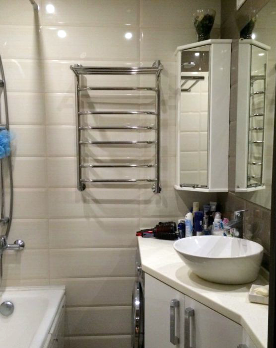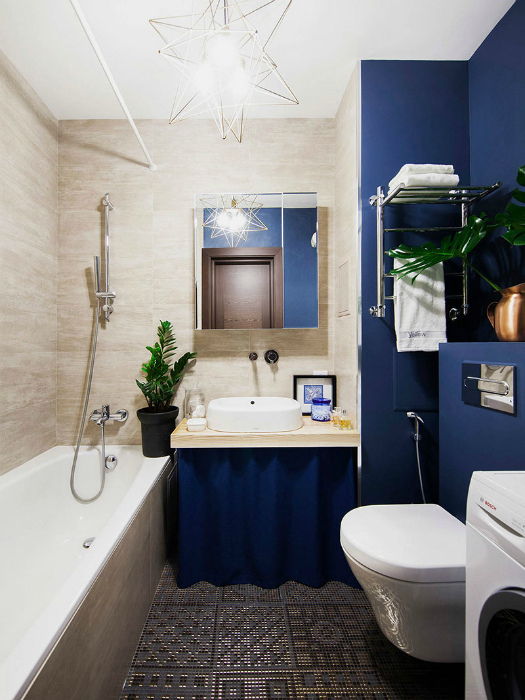 Ценные советы по обустройству крошечной ванны.Ванная комната - это особая часть жилища, из которой многие из нас стараются сделать настоящую конфетку. Но для многих людей непреодолимым препятствием к мечте становится маленькая площадь санузла. Но даже те несчастные квадратные метры, которые «щедрой рукой» выделили большинству из нас советские архитекторы, можно сделать вполне привлекательными. Подробнее об этом - далее в обзоре.1. Сочетание фактур Сочетание разных фактур в интерьере маленького санузла. | Фото: Лаборатория дизайна интерьера.Часто владельцы маленьких ванных комнат вообще не заморачиваются с интерьером, останавливаясь на самой простой керамической плитке. Однако не нужно преждевременно ставить крест на своем маленьком санузле. Дизайнеры уверяют, любое помещение можно сделать интересным, используя разнообразные фактуры и грамотное освещение. Яркий тому пример - ванная комната на фото. В ней удалось «подружить» керамическую плитку с узором, холодный бетон и доски. Ну, а завершает картинку - разнообразное и многоуровневое освещение.2. Изменение границ Ванная комната с необычными границами. | Фото: Моя Ванна.Маленькие санузлы - это фишка типовых построек 60-80-х годов. Однако скромный размер - не приговор. С помощью современных материалов и технологий можно самостоятельно скорректировать границы пространства. Взгляните, как оригинально и функционально дизайнеры обустроили эту ванную комнату, разместив в углу джакузи, обшивка которой плавно «перетекает» в шкафчик под мойкой и вплотную прилегает к стене. Остальные предметы обстановки имеют минималистичный дизайн, в таком же стиле подобрана и отделка.3. Функциональные решения Унитаз-биде в маленьком санузле. | Фото: HappyModern.RU.Маленькая ванная комната - не повод отказываться от комфорта. Далеко не в каждом санузле найдется место для установки отдельного биде, но современная промышленность делает невозможное возможным. К примеру, на фото стандартный санузел в пятиэтажном доме с унитазом-биде. Смеситель биде установили в экран ванны.4. Искусственные растения Искусственные растения в интерьере ванны. | Фото: Инросстрой.Проблемой многих ванных комнат является отсутствие уюта. В этом нет ничего удивительного, ведь влажная среда и отсутствие света - не самые благоприятные условия для живых растений, картин и деревянной мебели. Однако, если вы твердо решили, что в вашем санузле должны быть растения, выбирайте искусственные. Несмотря на то, что дизайнеры плохо относятся к этому украшению, в ванной комнате - можно! Только постарайтесь выбрать те, что максимально похожи на настоящие, и приготовьтесь к тому, что время от времени их придется менять.5. Стильная машинка Стиральная машинка под столешницей. | Фото: Труд.На фото - прекрасный пример того, где и как можно разместить стиральную машинку. Дизайнеры убрали верхнюю крышку и установили машинку под столешницей. Если отдать предпочтение накладной раковине с компактным сифоном, рядом со стиральной машинкой еще останется место для вместительной корзины для белья.6. Шторка Шкафчик со шторкой. | Фото: Пуфик.По мнению Novate.ru, сделать интерьер ванны уютней помогут шторки, но не те, что вешают на окна. Взгляните на фото, в этом интерьере дизайнеры заменили дверцы шкафчика на плотные синие шторки. Такое решение выглядит очень свежо и ую