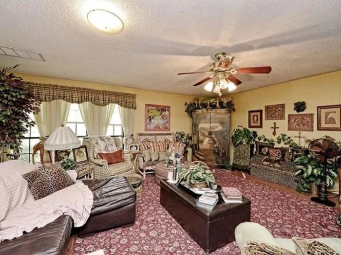Вычурная гостиная вряд ли сможет вместить много гостей – все заполонили подушки, декор и цветы. | Фото: awesomeinventions.com.Внимание людей, которые ищут недвижимость, не могло не привлечь объявление со странной припиской: «На участке имеется древнее захоронение (перед домом)». Естественно любопытный народ не преминул заглянуть на страничку и пролистать выставленные фотографии, которые еще больше загнали в угол, ведь такого поворота уж точно никто не ожидал.